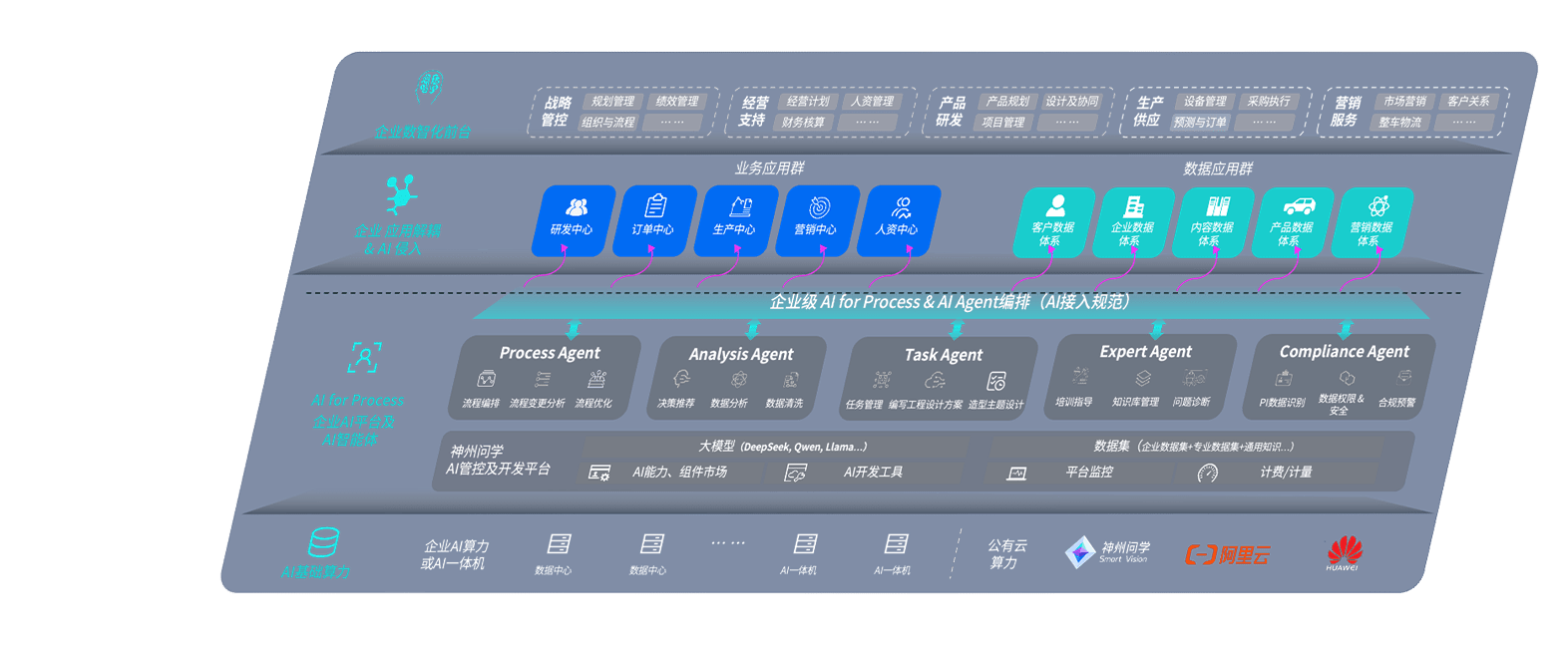 盛力国际问学智车解决方案是一套基于AI技术的汽车行业智能化系统,,覆盖从底层算力到顶层AI应用的全栈方案。。方案由算力层、、模型层和应用层组成:算力层,,方案支持多种一体机配置,,,,具备云端灵活部署、、、、多云适配以及动态优化计算资源的能力;模型层,,盛力国际问学平台版提供了企业级AI应用一站式构建与管理平台,,支持基于后训练强化技术的汽车企业专属模型的训练、、、评测和运营;应用层,,,盛力国际问学DeepSeek版提供包括超级员工、、、智能招采、、、智能营销、、、、智能客服、、、AI for BI等一系列解决方案,,,可助力汽车行业实现数字化转型,,让管理更智能、、、、响应更敏捷。。。