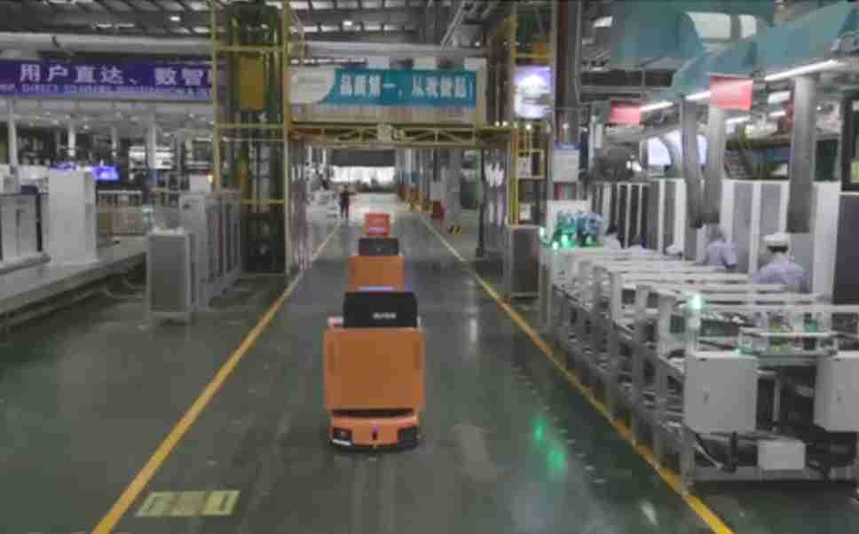 为车载冰箱物流配送打造的智能解决方案,,,包含产中物流通过潜伏举升AMR搬运至线边,,产后成品物流智能仓储,,,流程包含产中物流智能齐套入库,,,线边安灯叫料AMR智能配送至线边,,成品入库、、、、出库,,,,通过无人堆高车机器人,,,,智能仓储管理替代人工作业管理,,,实现更高存储、、、更高效率、、、更具柔性化的解决方案。。。。